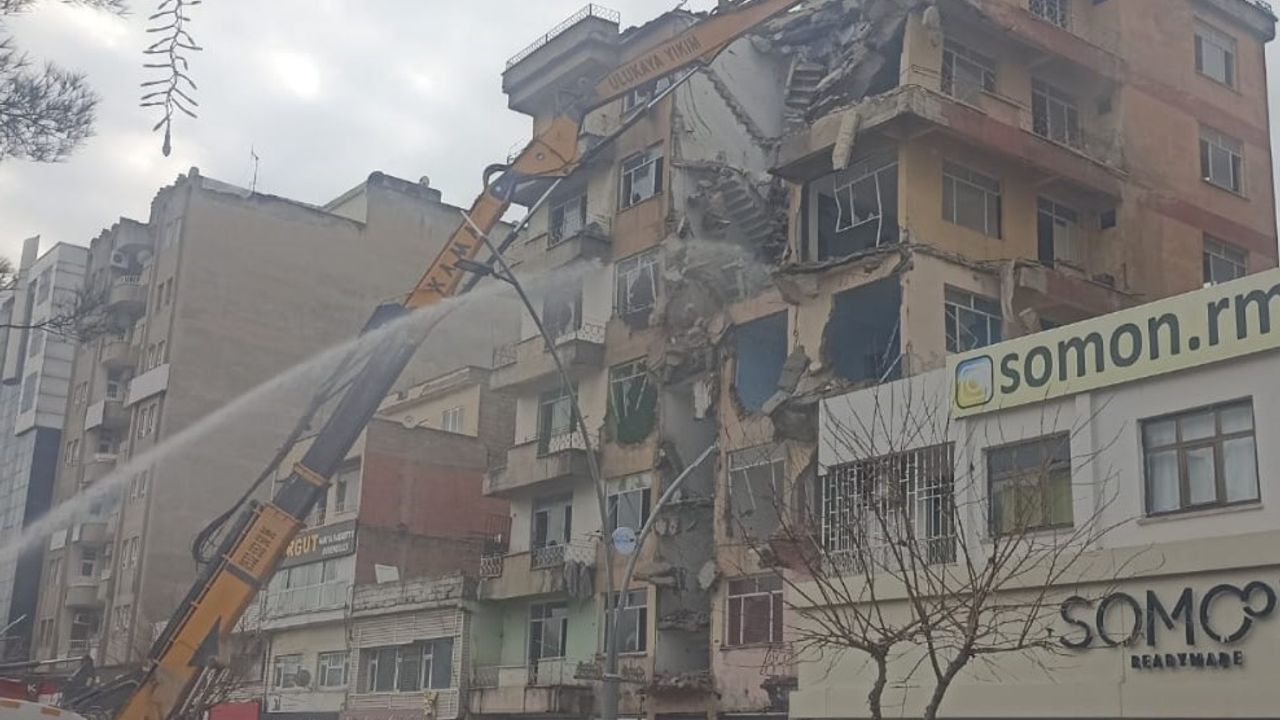 hasarlı binanın yıkımını gerçekleştiren ekipler Batman Belediyesi binası