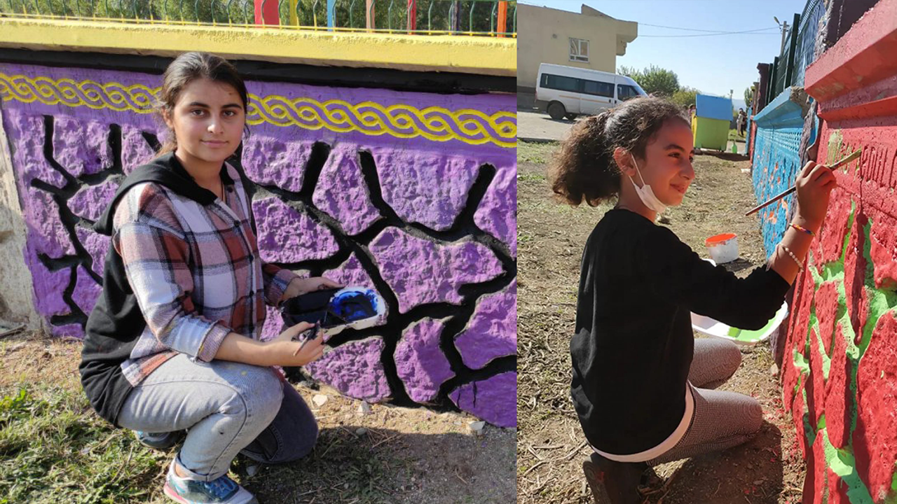 öğretmen ve öğrencilerin katılımıyla bahçe duvarı renklendirme çalışmaları