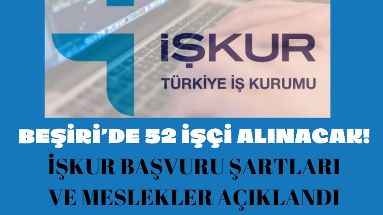 İŞKUR üzerinde yayımlanan 17 farklı meslekten 52 personel