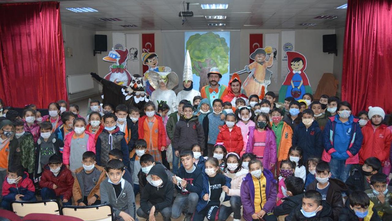 sahneledi. Öğrencilere tiyatro bitiminde ikramlar yapıldı. İlçe ve beldelerde