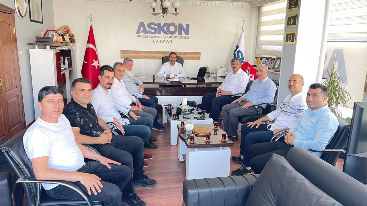 Batman Esnaf ve Sanatkârlar Odası Başkanı Mehmet Sıddık Çiftçi ve Yönetim Kurulu, Anadolu Aslanları işadamları Derneği (ASKON) Batman Şube Başkanı Mehmet Selman Nasıroğlu’na iade-i ziyarette bulundu.