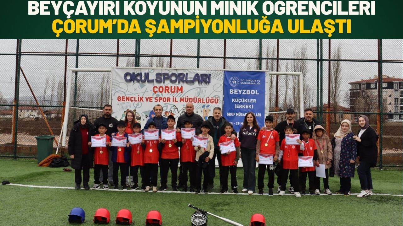 Beyçayırı Köyü Ortaokulu Küçükler Beyzbol Takımı, Çorum’da düzenlenen yarı finallerde tüm rakiplerini dize getirerek şampiyonluğa ulaştı ve adını Türkiye’nin en iyi 8 takımı arasına yazdırdı.