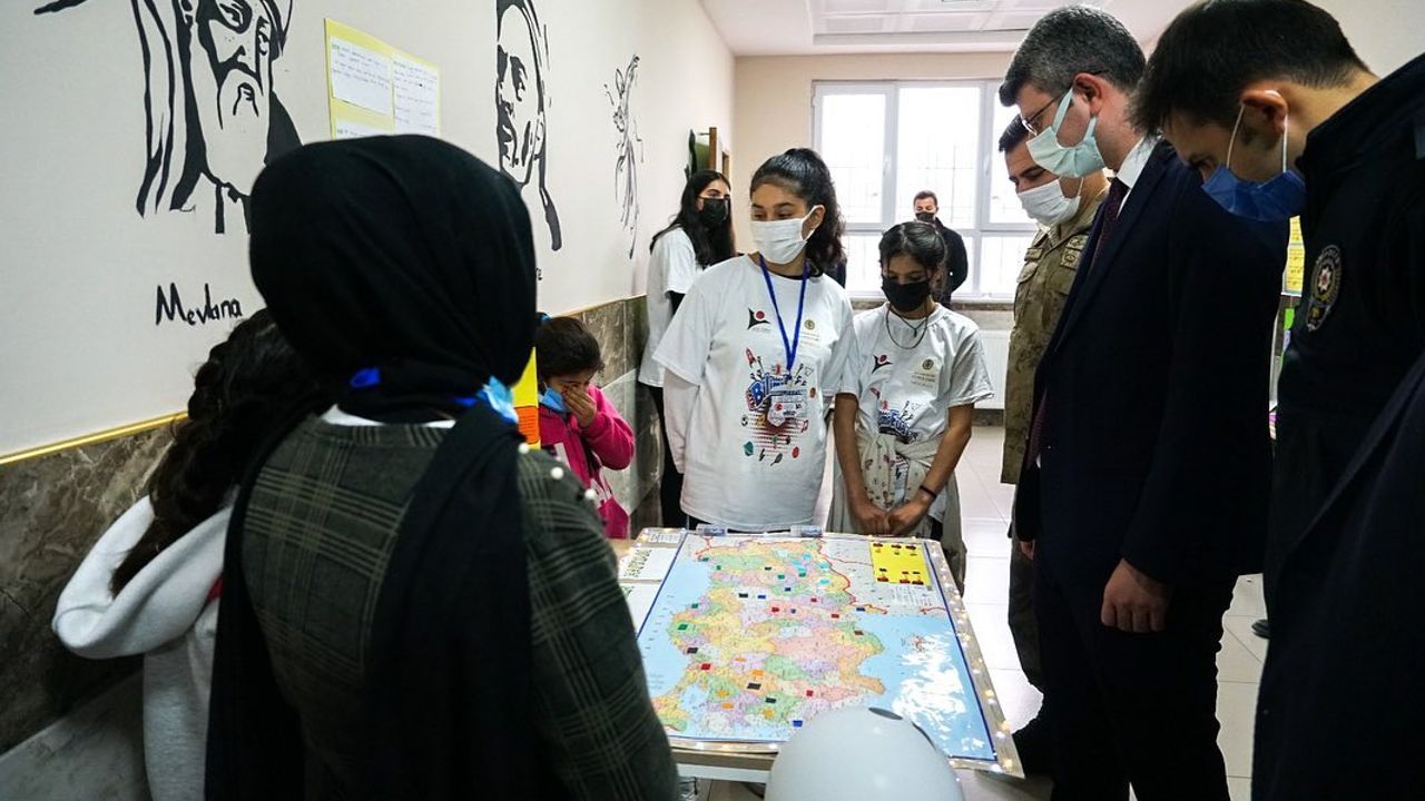 Hakan ARIKAN, İlçe Emniyet Amiri Bilal ÇİL, kurum amirleri ve öğretmenler eşlik