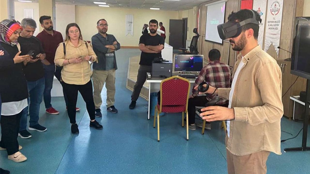 kurulan deneyim sahasında öğretmenlere sanal gerçeklik gözlükleri ile metaverse