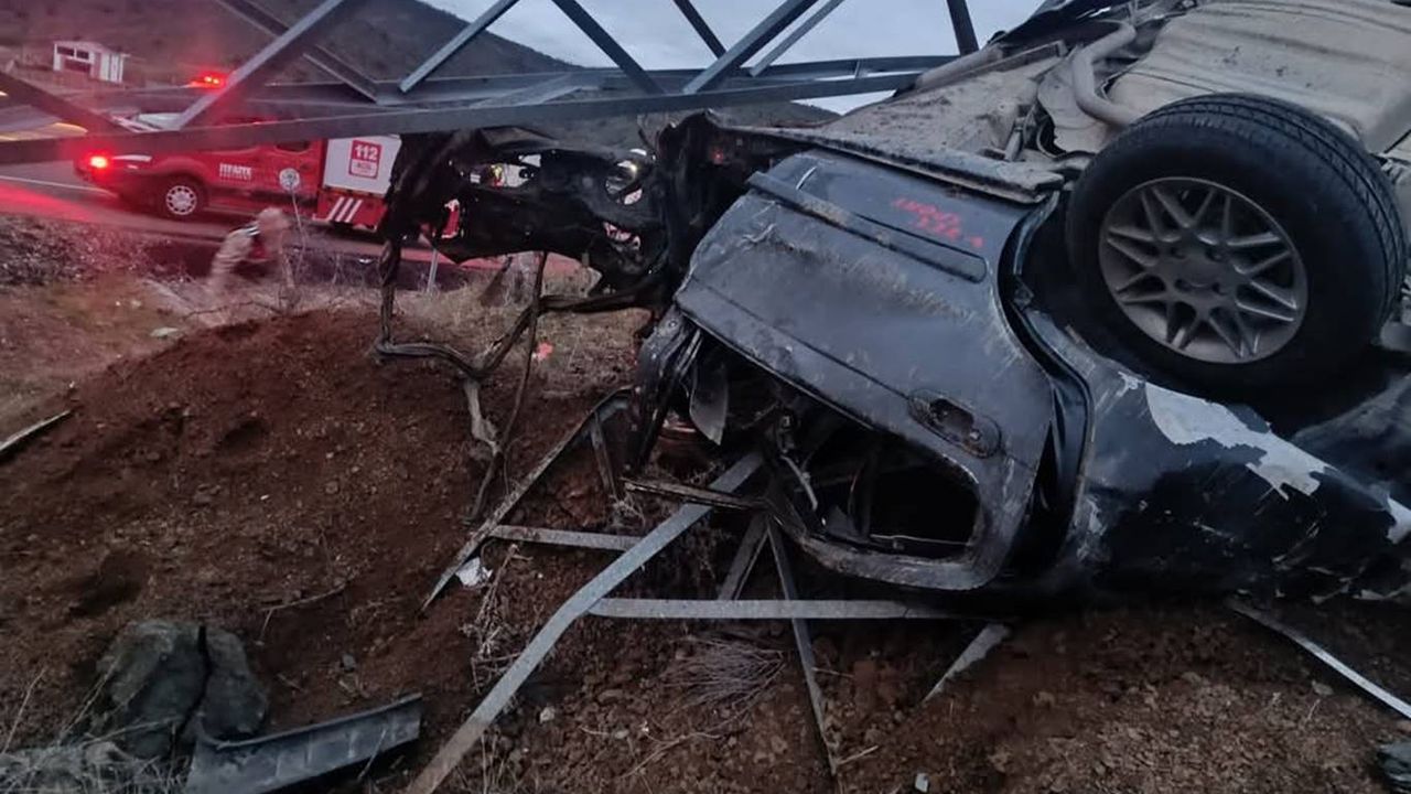 Çarpmanın etkisiyle araç hurdaya dönerken elektrik direği de kırılarak aracın üzerine düştü.