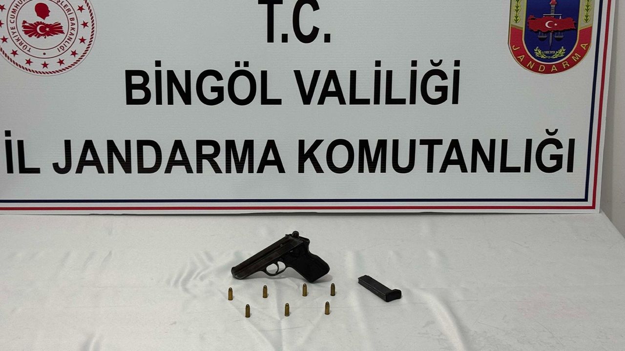 Bingöl Valiliğinden yapılan açıklamada, "Bingöl İl Jandarma Komutanlığı'na bağlı Solhan İlçe Jandarma Komutanlığı ve İstihbarat Şube Müdürlüğü unsurlarınca, icra edilen devriye faaliyeti esnasında şüpheli bir araç içerisinde yapılan arama neticesinde; 1 adet tabanca, 1 adet şarjör, 7 adet fişek ele geçirilmiş olup, 1 şüpheli şahıs hakkında 6136 Sayılı Kanun’a Muhalefetten Cumhuriyet Savcısı'nın talimatları doğrultusunda adli işlemlere başlanmıştır" denildi. (İLKHA)