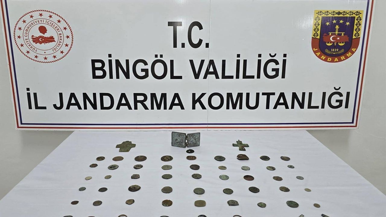 Yapılan aramada; 45 adet sikke, 7 adet yüzük, 2 adet ok ucu, 1 adet kolye ucu, 3 adet obje ele geçirildi.