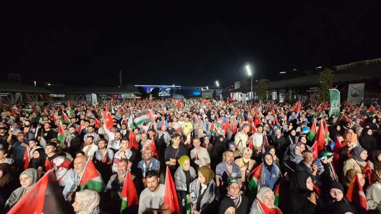 aleyhine sloganların atıldığı miting'te Filistin ve Gazze'ye destek sloganları