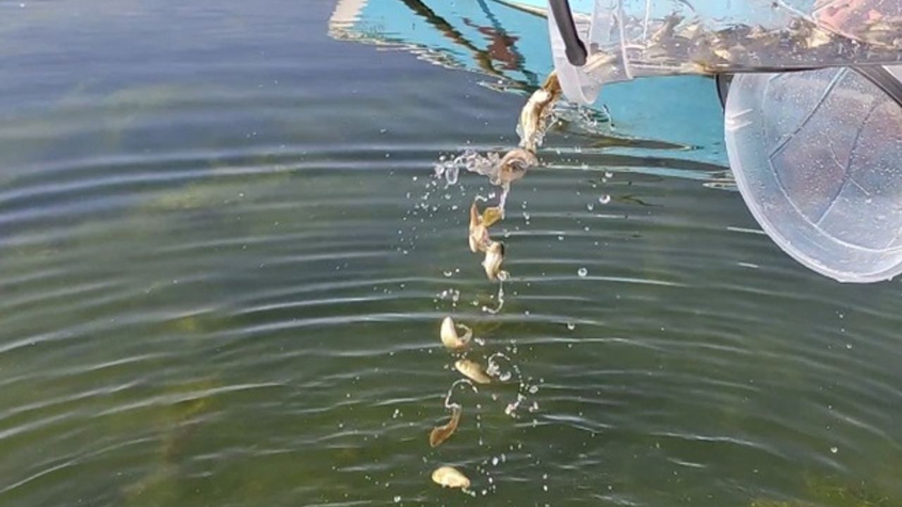 150 bin balık yavrusu, daha sonra göle bırakıldı.