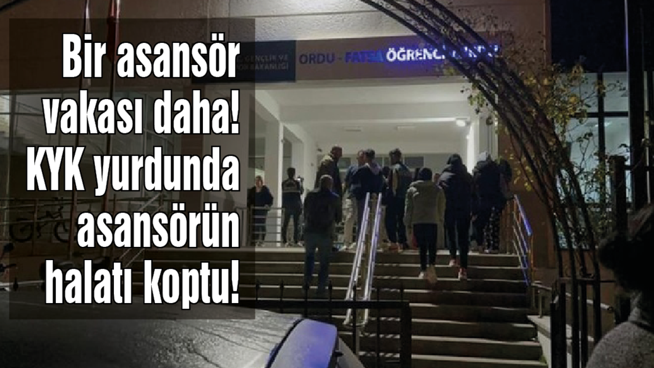 Ordu'nun Fatsa ilçesinde bulunan ve üniversite öğrencilerinin kaldığı KYK yurdunda, kız öğrenciler 5'inci katta asansöre bindi. Aşağı hareket eden asansör 4'üncü katta kendiliğinden durdu.