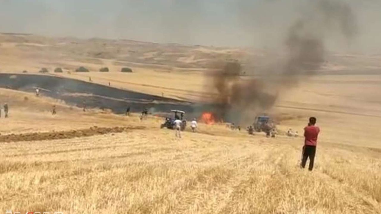 biçerdöverden çıkan kıvılcımlar, hava sıcaklığının da etkisiyle yangına neden