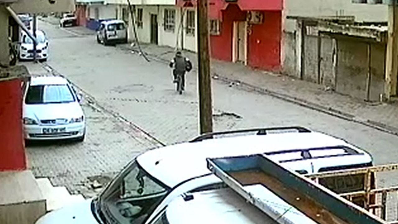 Edinilen bilgiye göre Kısmet Mahallesi 805. Sokakta bir bina önünde bisiklet süren bir çocuğun yanında gelen varlığı belli olmayan bir şahsın, bisiklet süren muhafaza 'binanın damına güvercinim konmuş, uçurabilir misin' demesi üzerine çocuğun binaya girmesiyle bisikletini alıp kaçtığı anları kamera kayıtlarına yansıdı.