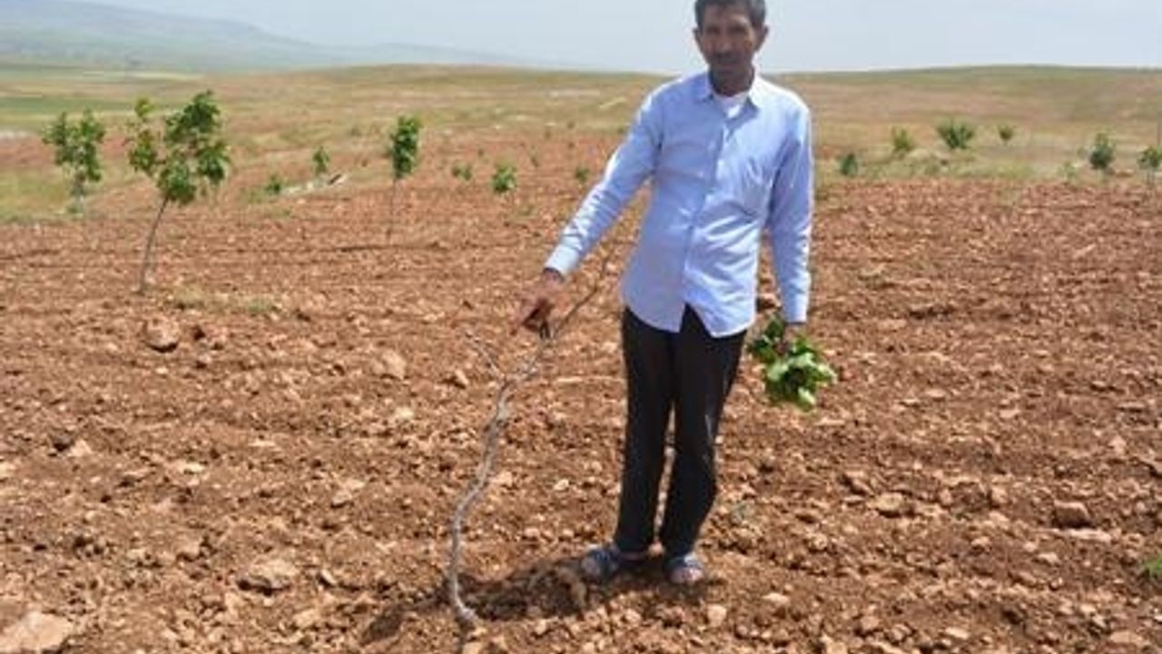 Batman'ın Recepler köyündeki 23 dönümlük fıstık arazisine böceklerin musallat olmasından büyük endişe duyan çiftçi, yetkililerden yardım bekliyor.