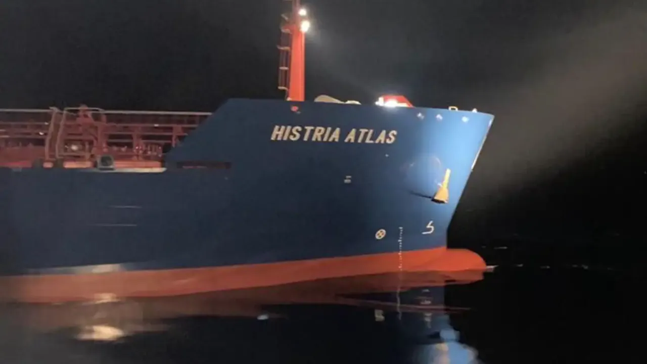 "Bulgaristan’dan Mısır’a seyir halindeyken Çanakkale Boğazı’nda makine arızası yapan HISTRIA ATLAS isimli 180 metre boyundaki tanker, Çanakkale GTH Merkezimiz koordinasyonunda; Kılavuz Kaptanımız refakatinde, KURTARMA-14 Römorkörümüzün yedeğinde Bozcaada Demir Sahası’na demirletildi." İLKHA