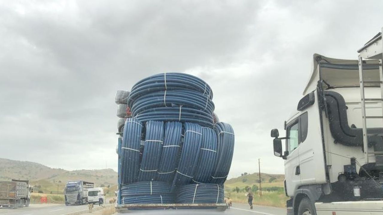 Dün akşam saatlerinde Kozluk yolunda boru yüklü kamyonet, kendi yüksekliğinin neredeyse iki katı yüksekliğine ulaşan yüküyle tehlikeye davetiye çıkardı. Aracın tehlikeli yolculuğu bir başka araçtaki vatandaşın cep telefonu kamerasına yansıdı.