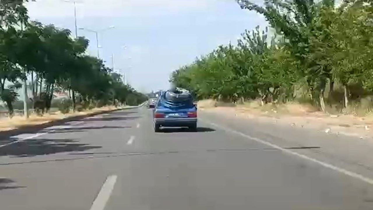 bagaja sığmayan boruları otomobilin üst kısmına koyup tehlikeye davetiye