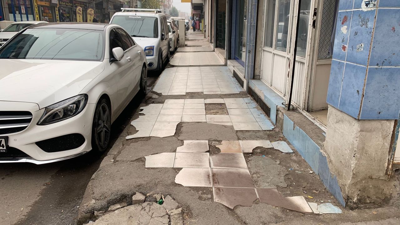 kaldırımlar bozuldu ve tamir edilmedi. Kapının önüne ufak bir el arabası bıraksak