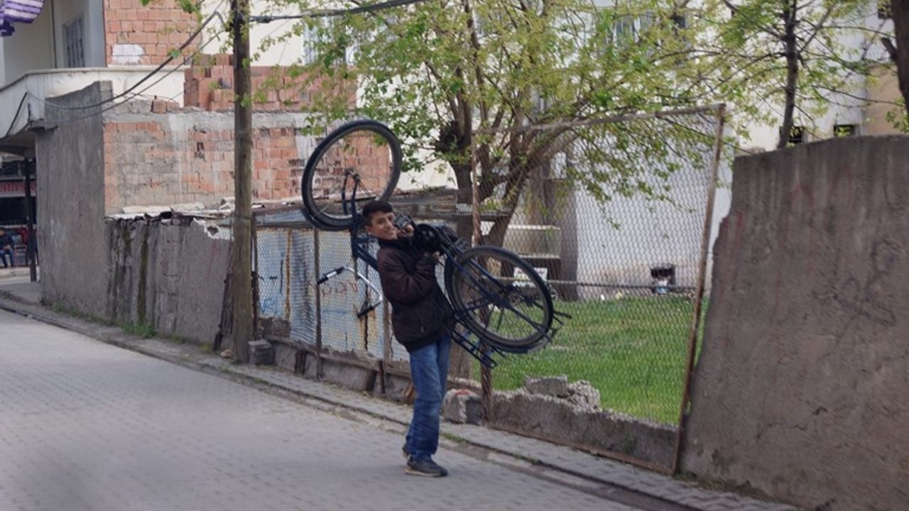 Yeni mahalle 1002. Sokakta bisikletini sırtlayan genç vatandaşı şaşırttı. Normal şartlarda gencin bisikleti sürmesi gerekirken, bisiklet genci sürüyor gibi gözüküyor. Neden bisikleti sırtında taşıyorsun diye sorduğumuzda da genç, 'Bisikletim arızalandı, sürükleyemiyorum, onun için sırtımda taşıyorum. İnsanlarda sürekli bana bakıp soruyorlar.' Diye konuştu.