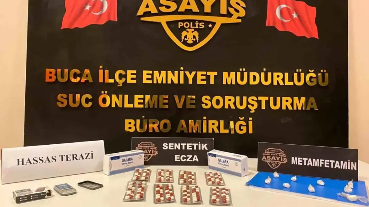 Yapılan aramada, satışa hazır hale getirilmiş metamfetamin maddeleri ve yeşil reçeteye tabi 112 sentetik hap ve hassas terazi ele geçirildi.