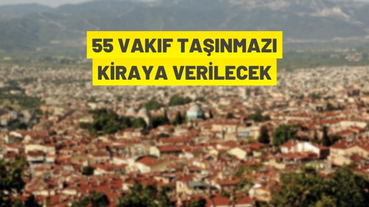Bursa Vakıflar Bölge Müdürlüğü, 55 adet vakıf taşınmazını 2886 sayılı Kanunun 45. maddesine göre açık teklif usulü ile 16 Haziran 2022 tarihinde kiraya verecek.