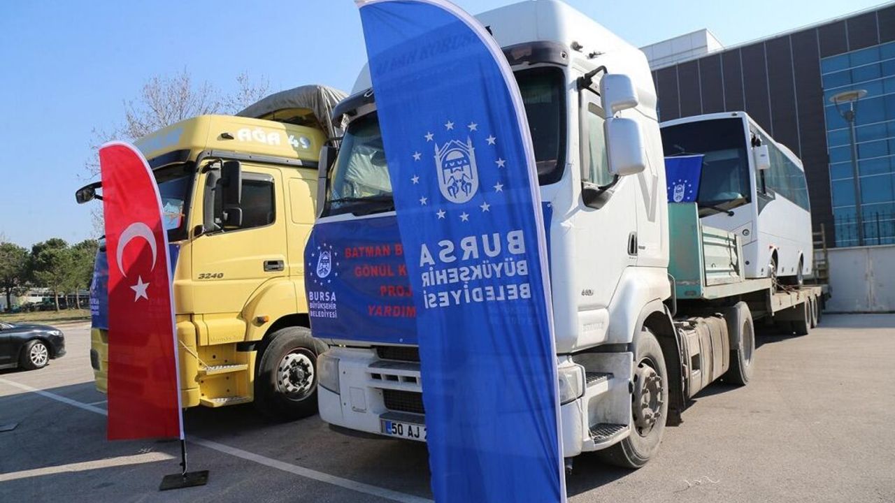 Bursa Büyükşehir Belediyesi, Batı ile Doğu bölgeleri arasındaki gönül köprüsünün gelişmesi çalışmaları kapsamında Batman'a bir midibüs, buzdolapları, çamaşır makineleri, çekyatlar, dizüstü bilgisayarlar ve akülü arabaların yer aldığı 2 tırı Batman'a gönderdi.