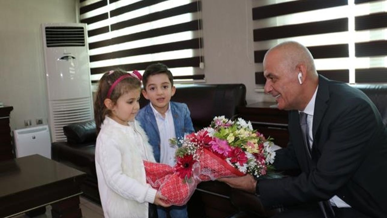 Ellerindeki dövizlerle Başkanlık Makamında renkli görüntüler oluşturan minik öğrencilerin ziyaretinden mutlu olan Başkan Vekili AKSOY, minik konuklarıyla sohbet ederek yakından ilgilendi.