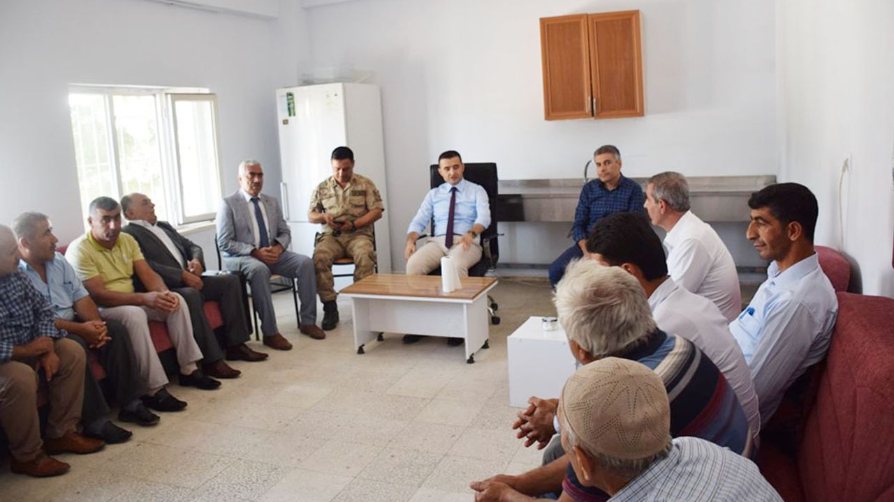 Köyü ve komşu köy muhtarlarıyla bir araya geldi. Sohbet havasında geçen