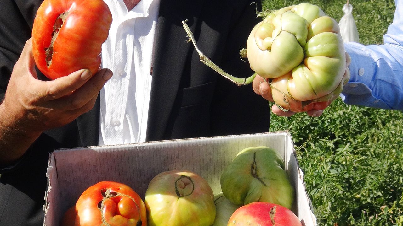 İlçe Tarım ve Orman Müdürlüğü tarafından coğrafi işaret tescili alması için başvurusu yapılan domatesler ilgi görürken aroması, büyüklüğü ve görüntüsüyle de oldukça dikkat çekiyor.