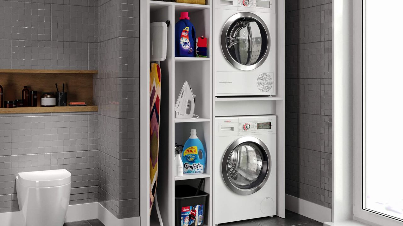 Yer Tasarrufu: En belirgin avantajı, iki büyük cihazı dikey olarak yerleştirerek zemin alanından büyük ölçüde tasarruf etmesidir. Bu, özellikle dar veya küçük evler için idealdir.