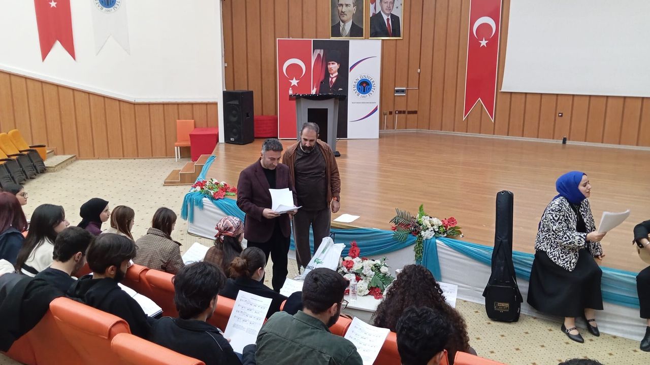 Doç. Dr. Yiğit Karabulut yönetimindeki koro tarafından verilecek olan ve heyecanla beklenen konserin provasına katılan Rektör Prof. Dr. Demir, hazırlıkları yakından takip etti. Duygu yüklü eserlerin seslendirileceği ve Çanakkale destanının ruhunun müzik aracılığıyla katılımcılara aktarılacağı konser öncesi Rektör Prof. Dr. Demir koristlerle bir araya gelerek öğrencilerle ve teknik ekiple yakından ilgilendi. Rektör Prof. Dr. Demir, Çanakkale Zaferi’nin ritme dönüşen ruhunu sahneye taşıyacak olan koro üyelerine ve emeği geçen akademisyenlere başarılar diledi.