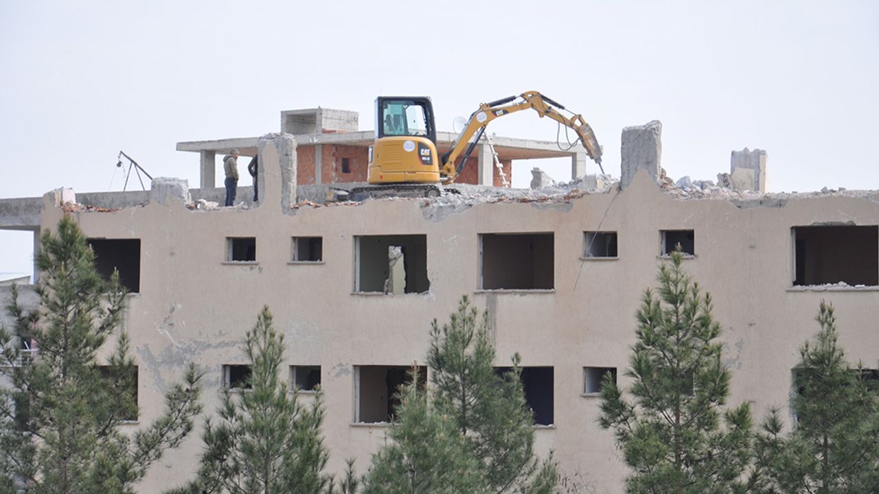 Çatıdan yıkımına başlanan lojmanların arsasına daha sonra okul yapılacak. Haber