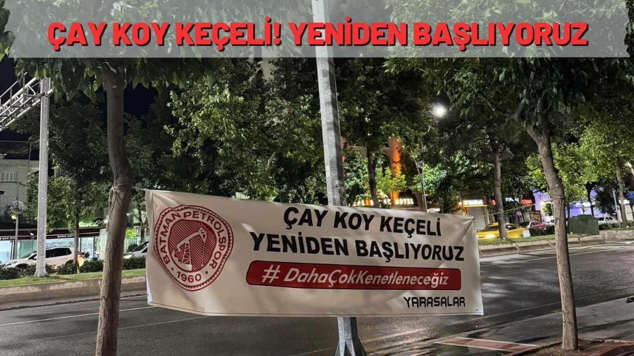 Batmanlı futbolseverler, “Çay koy Keçeli! Yeniden başlıyoruz” sloganıyla hem geçmişin muhasebesini yaptı hem de geleceğe dair umut dolu bir mesaj verdi. Özellikle “Bu şehrin hayalleri asla yarım kalmaz” ve “Bu şehre yaşattığınız heyecan için teşekkürler” yazılı pankartlar, takımın yeniden ayağa kalkacağına olan güçlü inancı yansıtıyor.