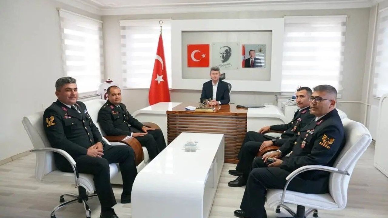 Bnb. Harun Çetinkaya ve beraberindeki heyet Kaymakam Mahmut Şener'i makamında
