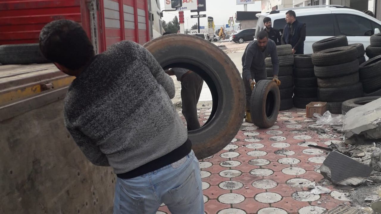 ile başta lastik tamircileri olmak üzere şehir genelinde atık lastik toplayan