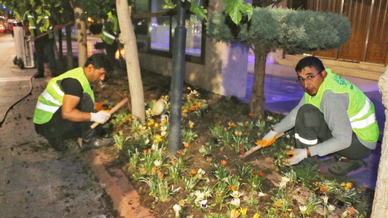 günlerinde kente bahar havası katan çiçek ekiminde 20 kişilik personel görev
