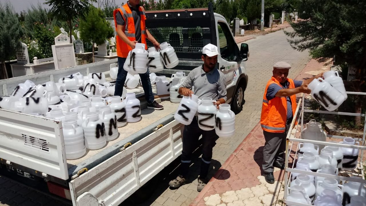 bidonlarının yerine toplamda 1500 adet su bidonu alan Mezarlıklar Müdürlüğünün