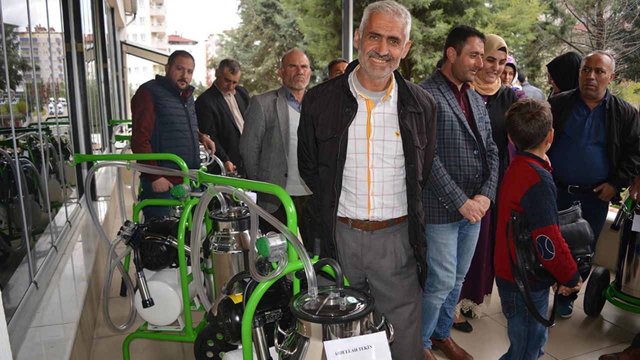 belirlenen 60 çiftçiye süt sağma makineleri verildi.