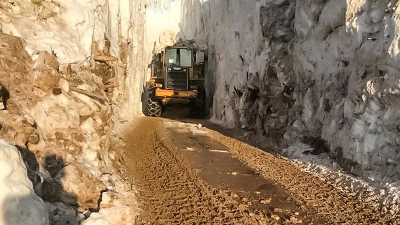 mezrasında yaklaşık 13 metre yüksekliğindeki çığ nedeniyle kapanan yol,