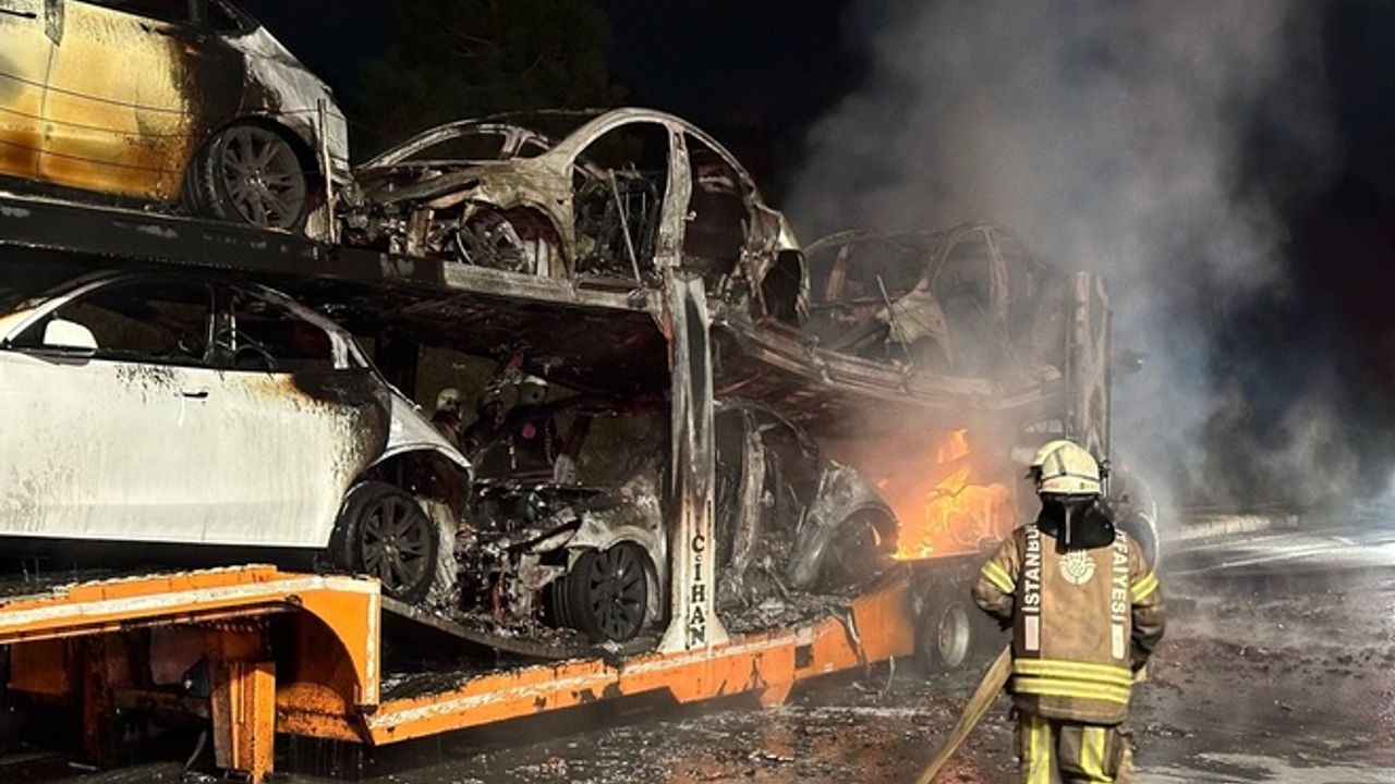 Tepeören Mahallesi Göçbeyli Caddesi'nde, seyir halindeki 34 BCJ 936 plakalı tırın dorsesinde yer alan bir otomobilde henüz belirlenemeyen sebeple yangın çıktı. Alevler, dorsedeki diğer araçlara da sıçradı.