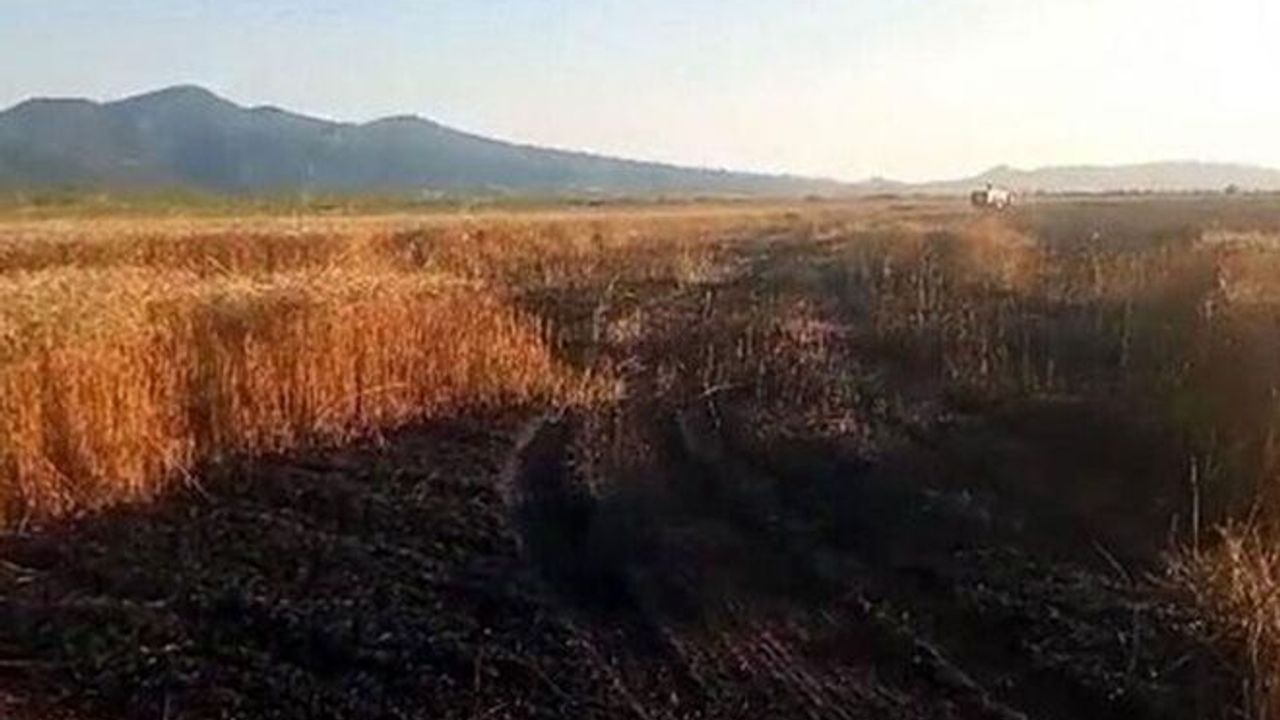 Yangın nedeniyle yaklaşık 15 dönüm buğday ekili alanın zarar gördü.