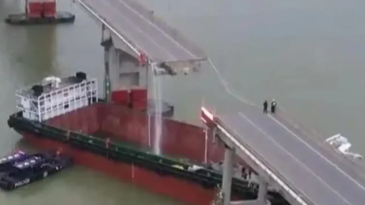 Çin'in güneyindeki Guangdong eyaletinin Guangzhou kentinde bir gemi, bir köprünün ayağına çarparak köprünün kırılmasına neden oldu.