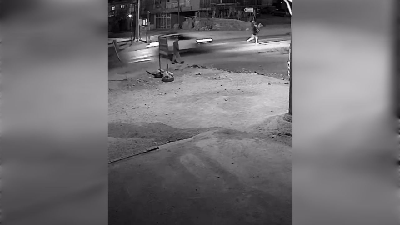 Görüntüde Öztekin’in yolun karşısına geçtiği esnada süratle gelen cip, kendisine çarpıyor.