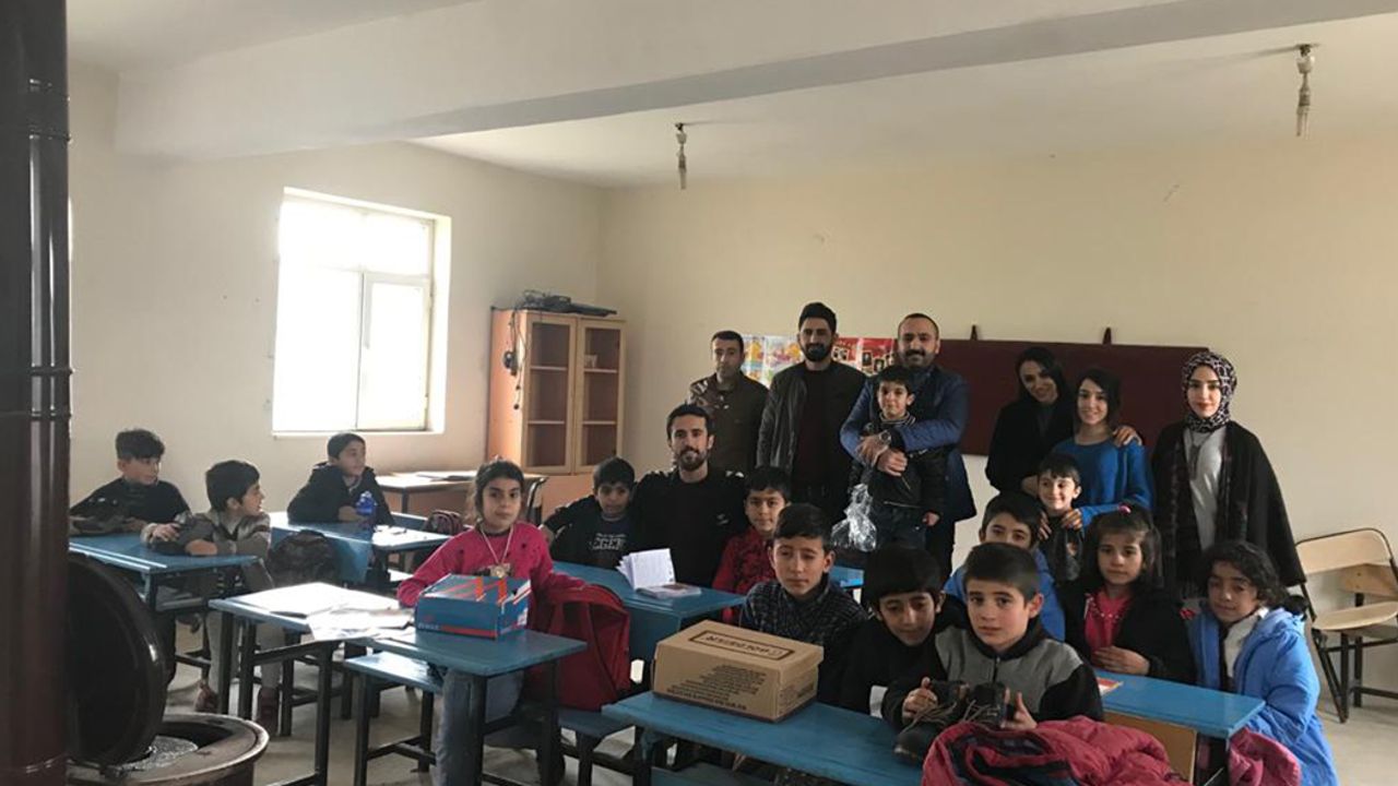 malzeme dağıtımında çocukların ve ailelerin sevinçleri dikkat çekti.