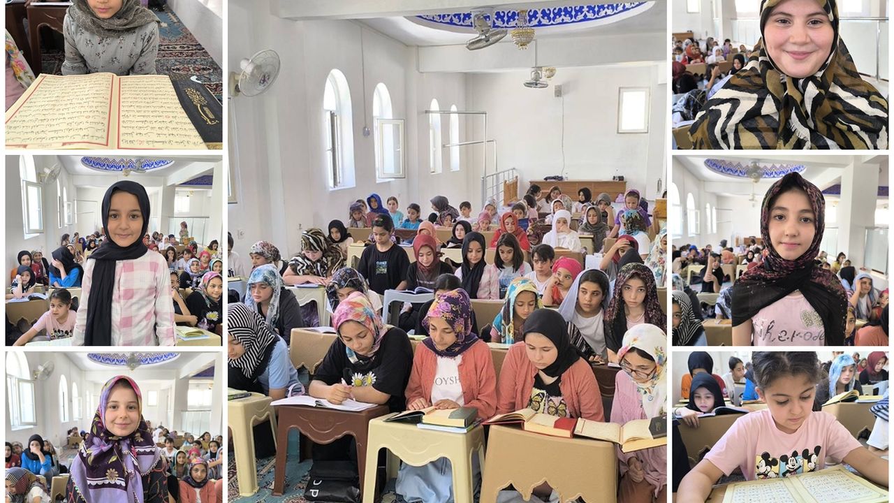 Büyük bir katılım ve heyecanla başlayan yaz Kur'an kursları devam ediyor. Özellikle kız çocukları, cami ve Kur'an kurslarına katılarak Kur'an okuyup öğrenmenin mutluluğunu yaşıyor.