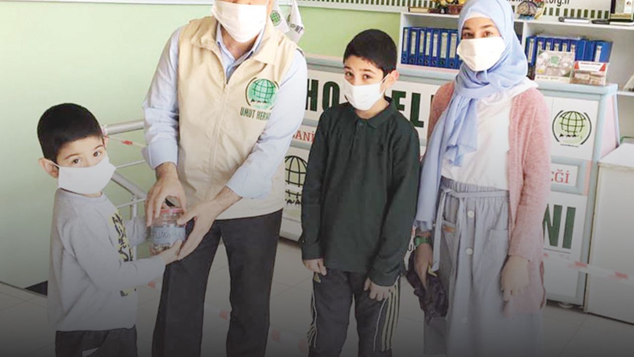 kardeş, biriktirdikleri harçlıklarını muhtaçlara verilmek üzere Umut Kervanına