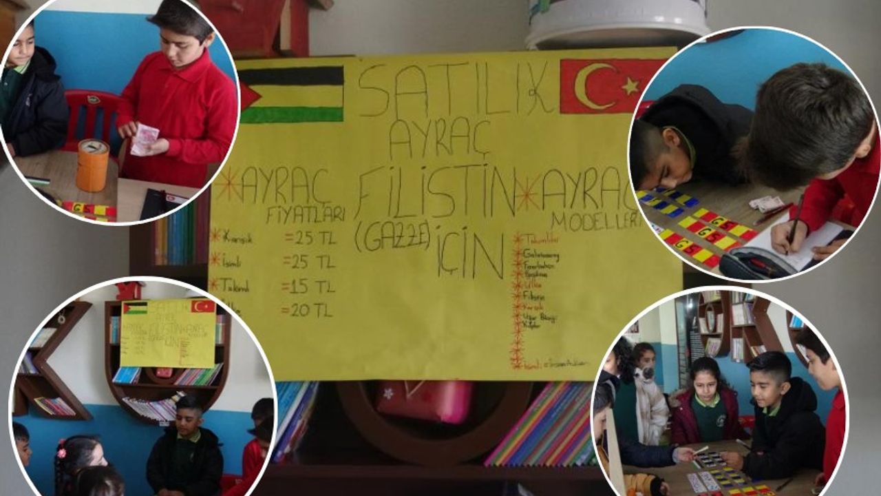 Filistin'e destek olmak için Gercüş Cumhuriyet İlkokulu öğrencileri yaptıkları