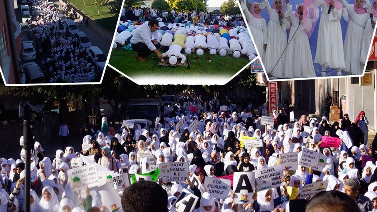 'Hayat Namazla Güzeldir' sloganıyla Kur'an Nesli Platformu tarafından ilan edilen 'Ağustos Ayı Namaz Ayı' etkinlikleri kapsamında iki haftada namaz eğitimini başarıyla tamamlayan 6-10 yaş arasındaki 3 bini aşkın çocuk için Hürriyet Mahallesi'ndeki parkta namaz etkinliği düzenlendi. Program binlerce çocuğun etkinlik alanına yürüyüşüyle başladı.