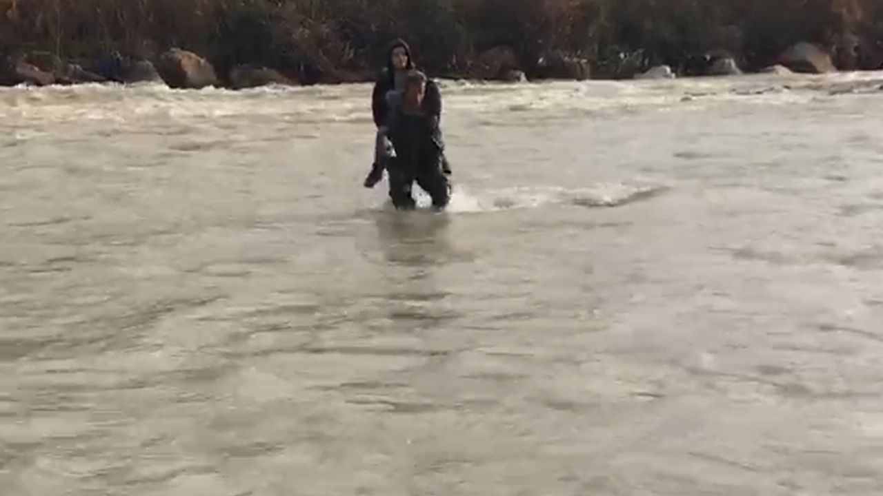 gün Sason Çayı’ndan tek tek sırtında taşıyarak karşıya geçiriyor.