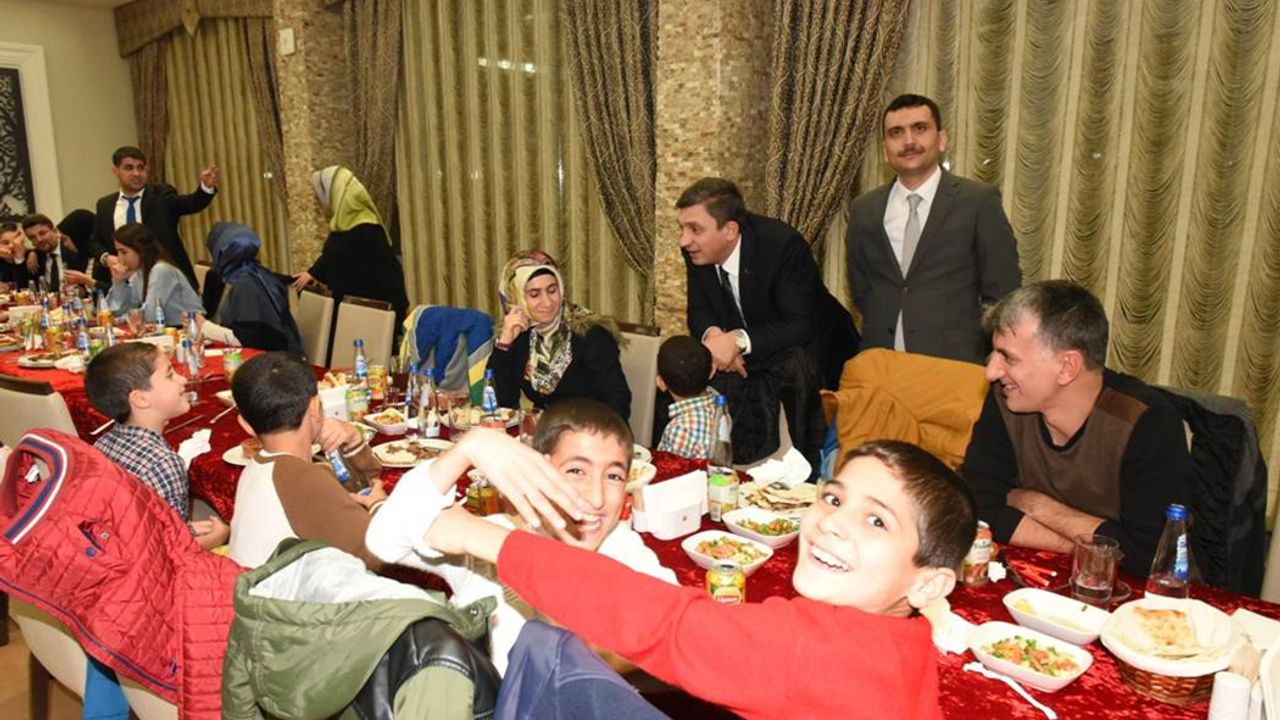 düzenlenen yemekte çocukları ağırlayan Vali Şahin ve eşi Ebru Şahin, çocuklarla
