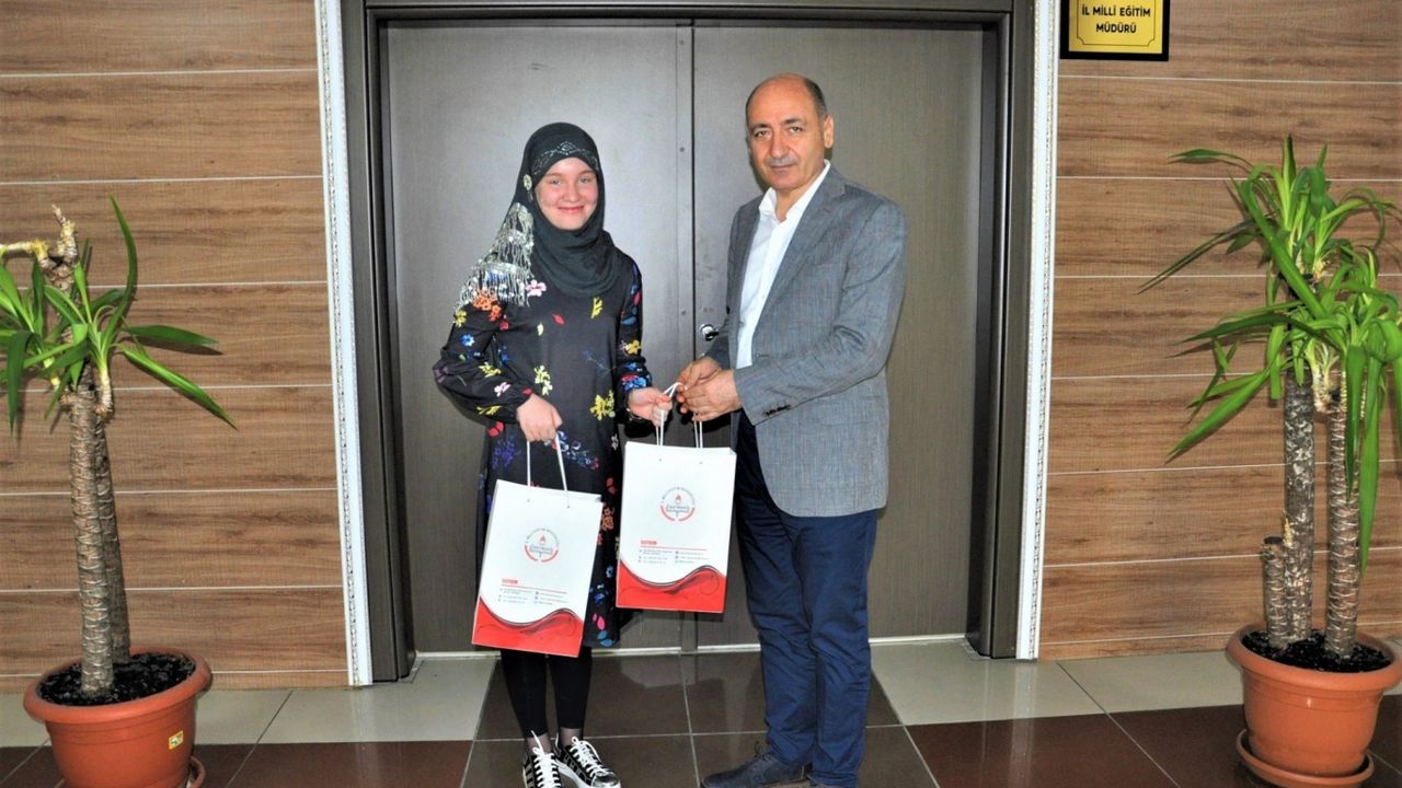 Milli Eğitim Müdürü Kurtaran, LGS Türkiye birincisi olan Alye Gündoğdu ile bir